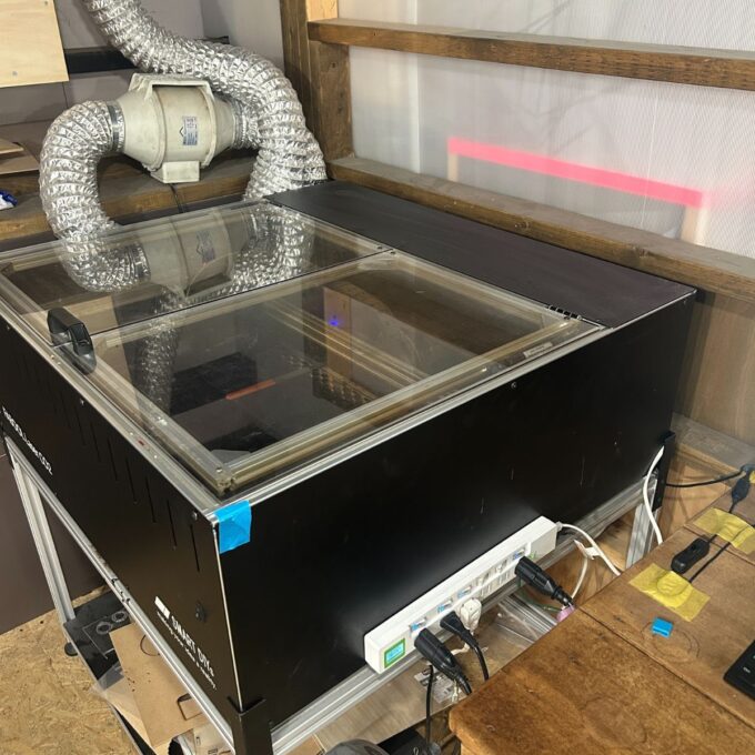 これはこれでシンプルにかっこいいのですが、物足りなささも感じており「本物のレザーに、なにかつけてみたいけれど、レザーカービングは敷居が高いし、そもそもこの厚みのレザーにカービングは難しいんだろうし・・・。」と悩んでいたところ、なんと近所にレーザー加工が可能な工作室の存在を知ります。