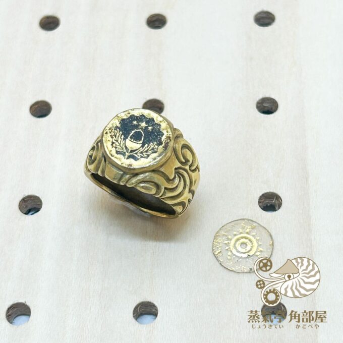 「書籍にも使われているどんぐりのマークは、これだったのかー。よし!私自身も食いっぱぐれないように、食いっぱぐれないお守りとして、どんぐり紋章を指輪に付けよう!」と、紋章をデータ化して貼り直しました。